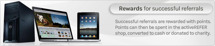 activeREFER is your referral engine. Successful referrers are rewarded with points that can be spent, converted to cash or given to charity.